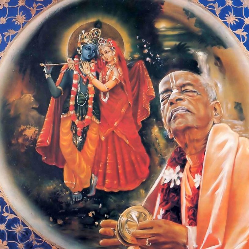 The spiritual master is always eager to hear and chant about the unlimited conjugal pastimes of Rādhikā and Mādhava, and Their qualities, names, and forms. The spiritual master aspires to relish these at every moment. I offer my respectful obeisances unto the lotus feet of such a spiritual master.